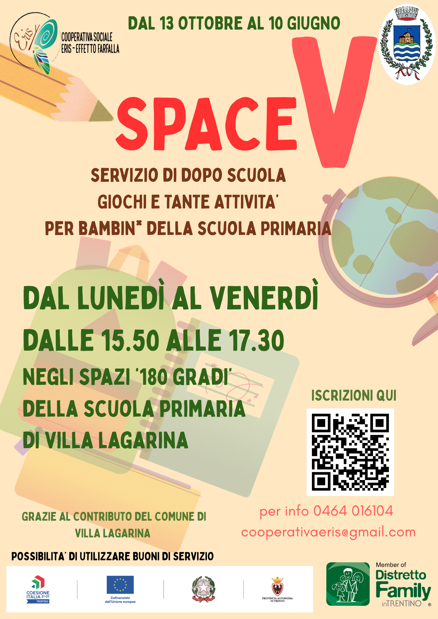 Sono aperte le iscrizioni al doposcuola SPACE V, dedicato ai bambini/e che frequentano la scuola primaria di Villa Lagarina.