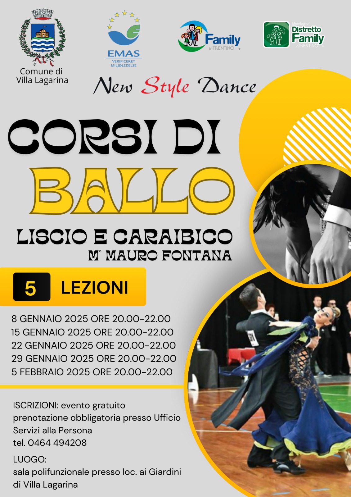 L'Associazione Sportiva Dilettantistica "New Style Dance" organizza n. 5 lezioni di corsi di ballo liscio e caraibico con il Maestro Mauro Fontana che si terranno nelle seguenti giornate: