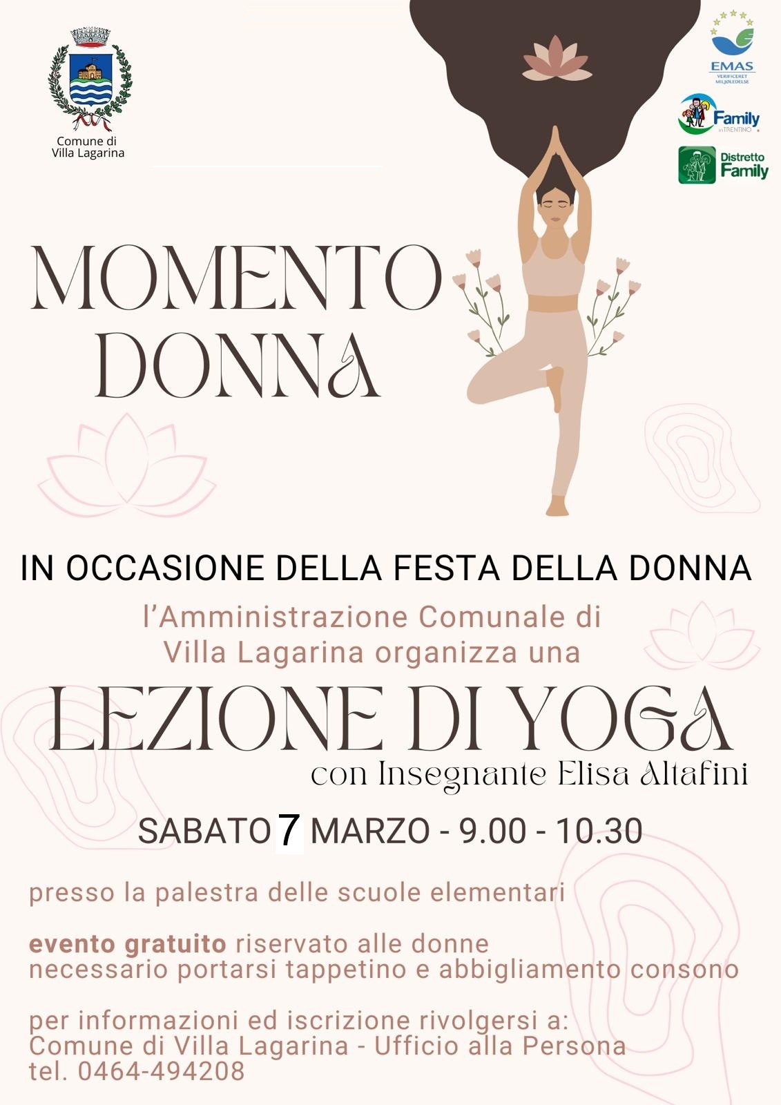 In occasione della Festa della Donna, l'Amministrazione comunale di Villa Lagarina organizza una lezione di yoga presso la palestra delle scuole elementari